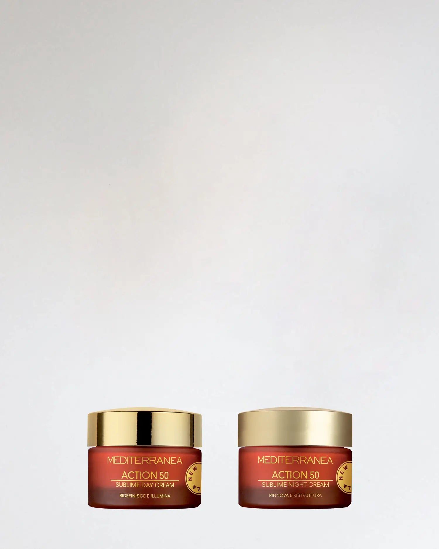 Action 50 Sublime day cream, la crema viso giorno antirughe ridensificante, soddisfa le particolari esigenze di una pelle indebolita dai cambiamenti ormonali legati all'età. Idrata, nutre e contrasta la perdita di tono. Action 50 Sublime night cream, la crema viso notte antirughe rigenerante, contrasta la perdita di tono ed elasticità e accompagna il riposo notturno per una pelle al risveglio rimodellata e rigenerata. Le tue alleate di bellezza che ti accompagnano durante tutta la giornata. Composizione kit: Action 50 Sublime day cream - vaso 50 ml Action 50 Sublime night cream - vaso 50 ml